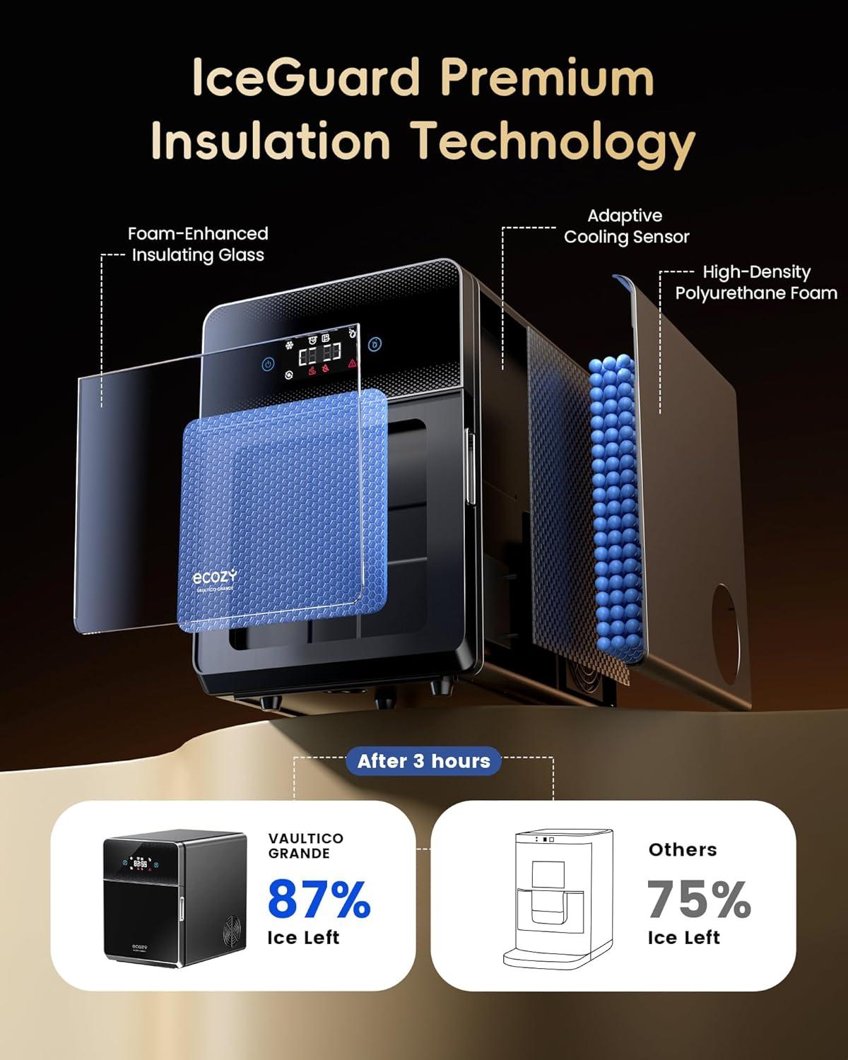 Tech-Driven Insulation: Our exclusive GlacioLock technology, activated when the basket is full, combines with double-layer insulation to cut melt by 13%—keeping your whiskey chilled longer for a smoother, undiluted taste every time