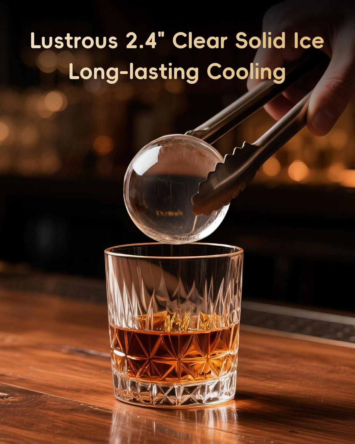 2.4″ Ultra-Large Whiskey Ice in 45 Minutes: Creates three ultra-large, ultra-clear spheres that melt slower, chill longer, and preserve whiskey’s pure flavor—perfect for a refined drinking experience without the wait