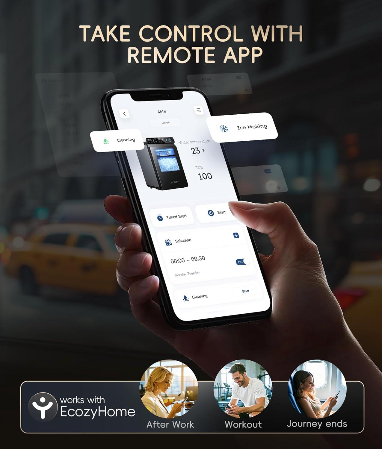 Smart App & Voice Control: Use the EcozyHome app or voice commands via Alexa and Google Assistant to start, stop ice anytime, from anywhere