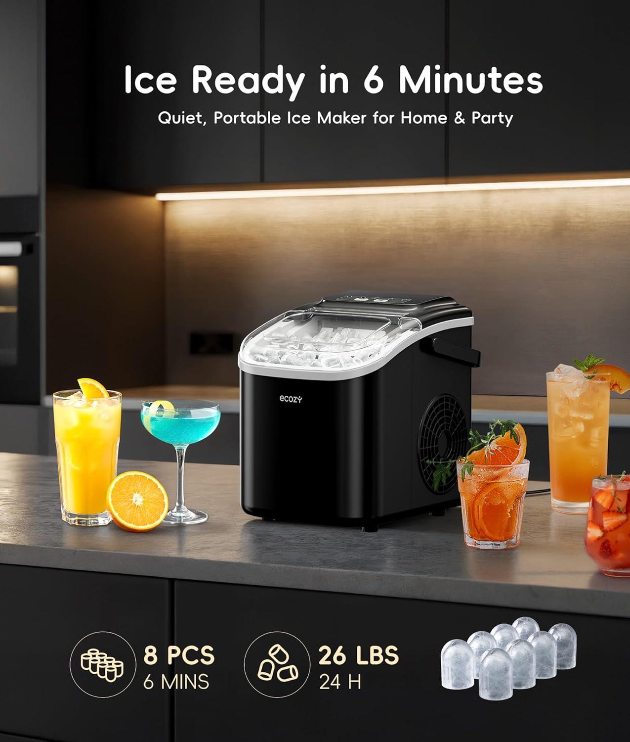 Rapid Ice in Just 6 Minutes: Enjoy a fresh batch of bullet ice in only 6 minutes with our high-efficiency compressor. Producing up to 26 lbs of ice per day, this fast-acting machine keeps your beverages perfectly chilled during parties, busy mornings, or anytime you need instant refreshment